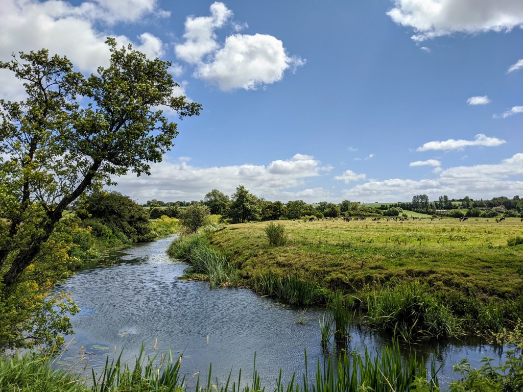 Away from the dense and hilly countryside, field after field followed with no conurbations remotely visible. Stereotypical English villages came and went with opportunities for resting in the shade, refuelling and stocking up from the local stores. The river made more appearances and in all its splendour, no longer was it the small trickling stream that I hopped over hours before.