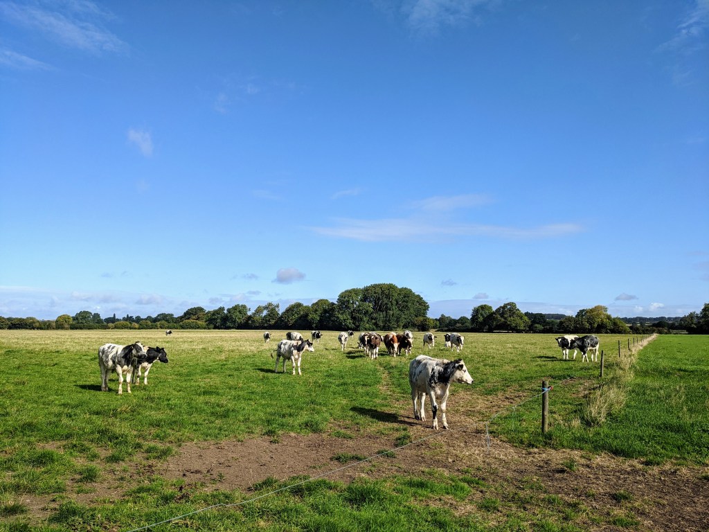 Alongside the river, cattle grazed and the sun shone, this was exactly what I had expected and I felt I’d earned it. Not less than an hour before I’d been charged at by a young bull, twice – picture me dashing and leaping over a gate like a clown 🙂 – only to be told by nearby residents that I would be OK if I, “…just stood your ground”. Errr, no thank you. And, of course, battled through more overgrown paths and stiles – and yes it stung a lot.