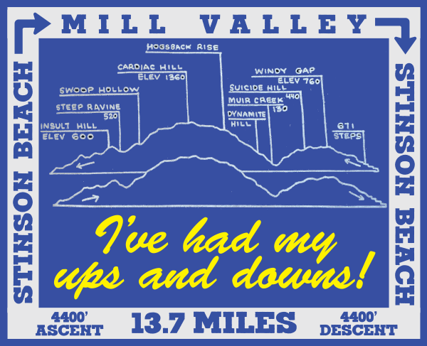 I really liked the small patch logo (above) citing the hill names, height (in feet) and the step total. Loved the quote, “I’ve had my ups and downs”, it completely summed it up.