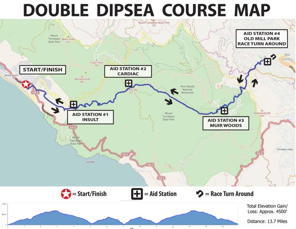 Fast forward to this year and I find myself travelling to Nevada for work so I decided to add a few days of my own time and fly to California, the perfect opportunity to give the Dipsea trail a go. Initially, my planning ran away with itself and I also concocted a mini Oregon road and running trip and found I had a day spare. I set about searching the local Oregon area for an event I could enter but nothing was forthcoming that was within my ability – the 200-mile Ultra I discovered was definitely off the cards! I resumed my search back to California and stumbled on the Double Dipsea, I couldn’t believe I’d missed this. This had even greater appeal as it’s an out-and-back route which makes logistics easier – yes, I’m of that age where practicalities are important 🙂 . The dates didn’t align exactly with the road trip so I dismissed Oregon and kept my notes for another day. As luck would have it the registration had only been open a day and spaces were still available. Game on.