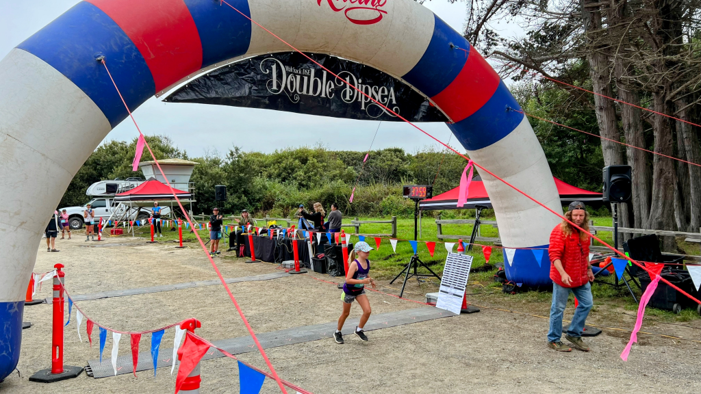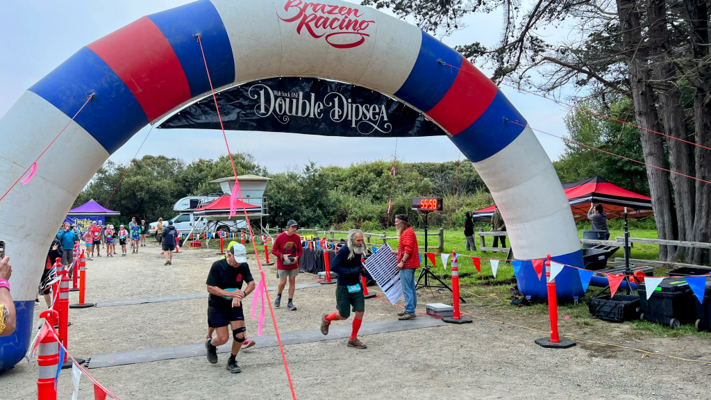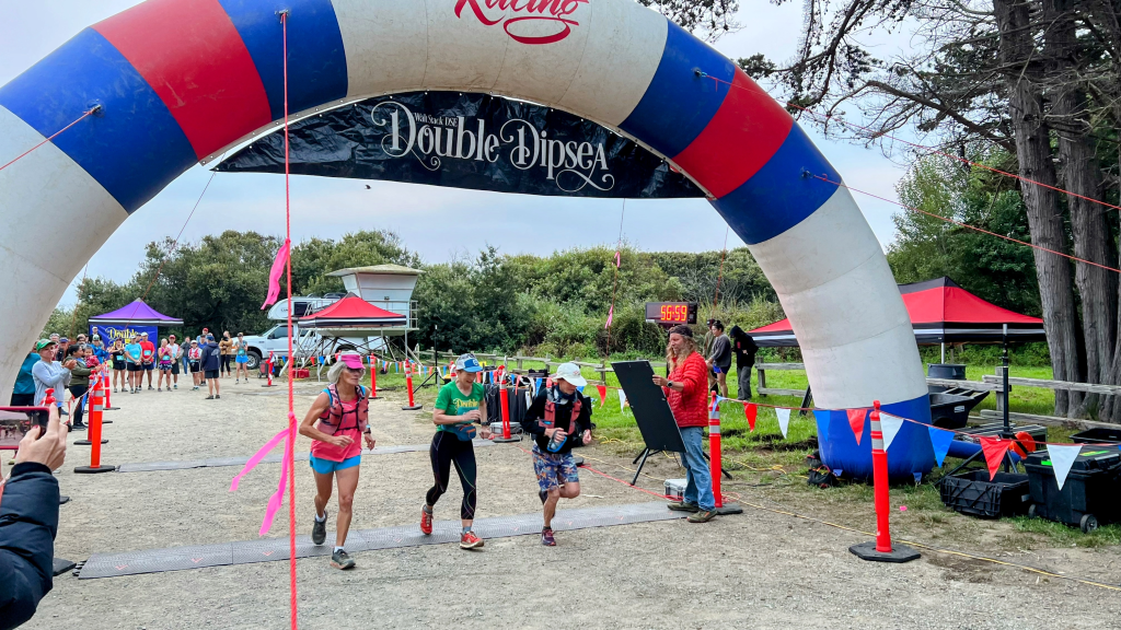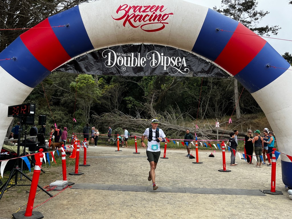 In the last open stretch Todd (in red) picked up his pace and left myself and Kelley to our own speed finding our way down to Stinson Beach. The final 80 or so metres were back on the road and I shot off to cross the finish line.