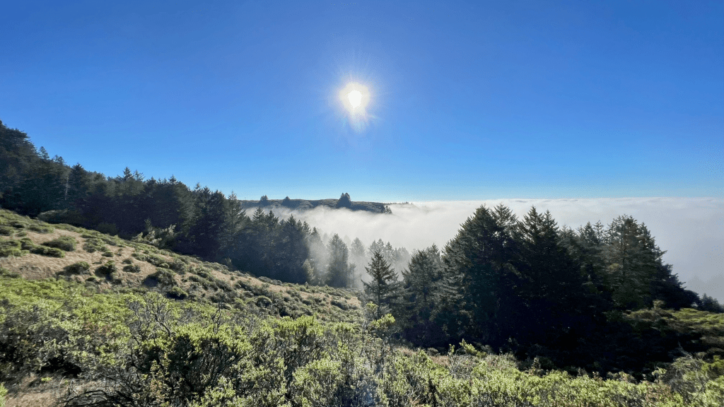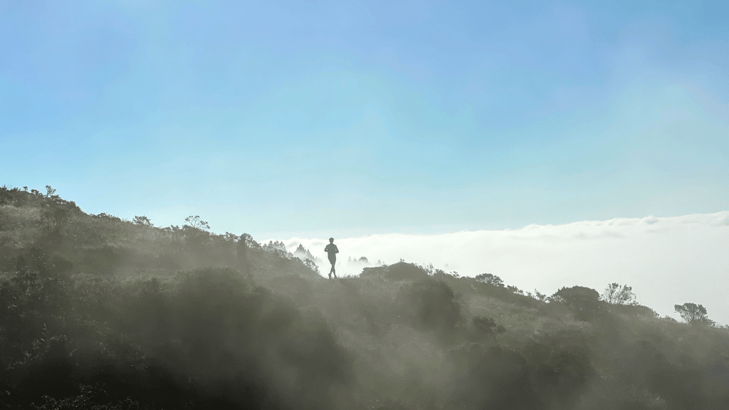 The grouping of runners began to thin out as we all found our rhythm and soon we breached the top of the fog line, it was incredibly dramatic.