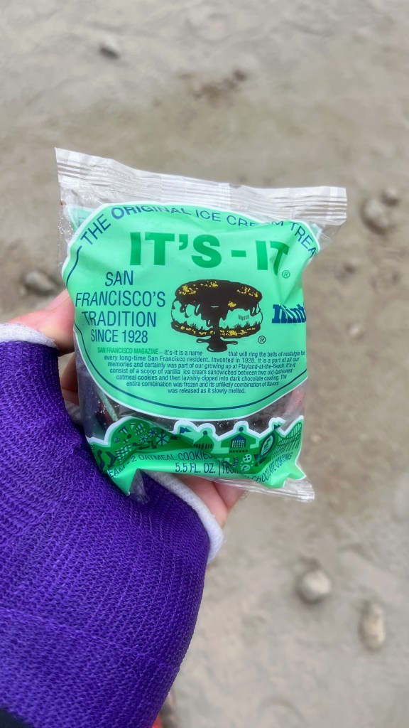 I headed to the post-run snack area which was bursting full of fruits, sugar-based and salted snacks plus ice-cream. On the way down both Kelley and Todd were extolling the delights of “It’s It”. An ice cream sandwich that’s been a ‘thing’ in the Bay Area for many years. Having been to San Francisco many times I couldn’t believe I’d never come across it, I love ice cream!