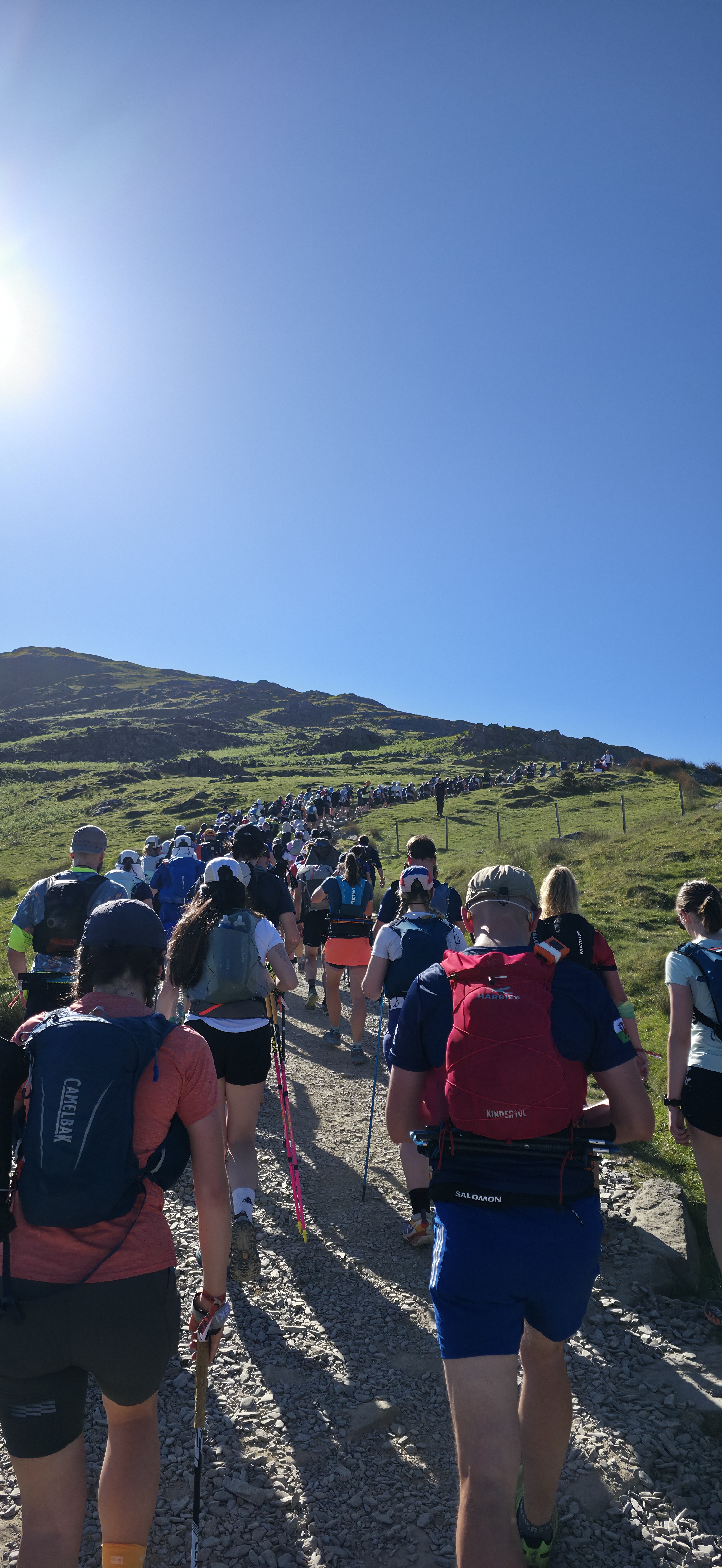 The shade didn’t last too long before my next challenge lay ahead, in the form of a mountain called Mynydd Mawr. My friend Sean (https://www.instagram.com/trailrunforlife/) previously explained the blind summits of this so I knew what to expect but knowing and experiencing are two different things! Looking up ahead and as far as my eye could see I was able to make out small dots of people in the distance. Oh well.
