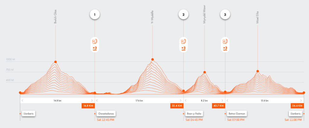 Reaching Pen-Y-Pass I was about 25 minutes ahead of last year’s arrival time and I felt good. I’d been focussing heavily on keeping fuelled and hydrated in the past 2.5 hours. The gradient began to ease which meant I had the confidence to pick up the pace and run for most of the way to the first aid station. Unlike last year, I was focused on my aid station cut-offs this time around and left Gwastadanas Farm at 11:55, with 50 minutes in hand.